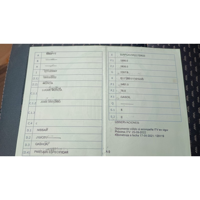 NISSAN QASHQAI I (J10, NJ10) 1.5 DCI. nissan qashqai i (j10, nj10) del año 2007